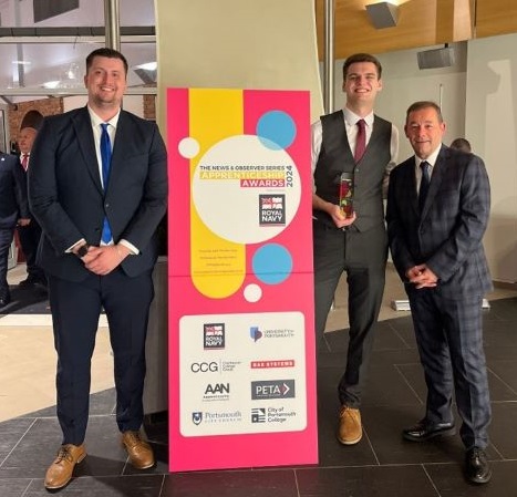 Aaron scooped up the prize for Engineering/Manufacturing Apprentice of the Year at the Portsmouth News and Chichester Observer awards in October. Sponsored by The Royal Navy, the awards recognise the best and brightest apprentices, mentors, training providers and employers from across the Portsmouth and Chichester area.